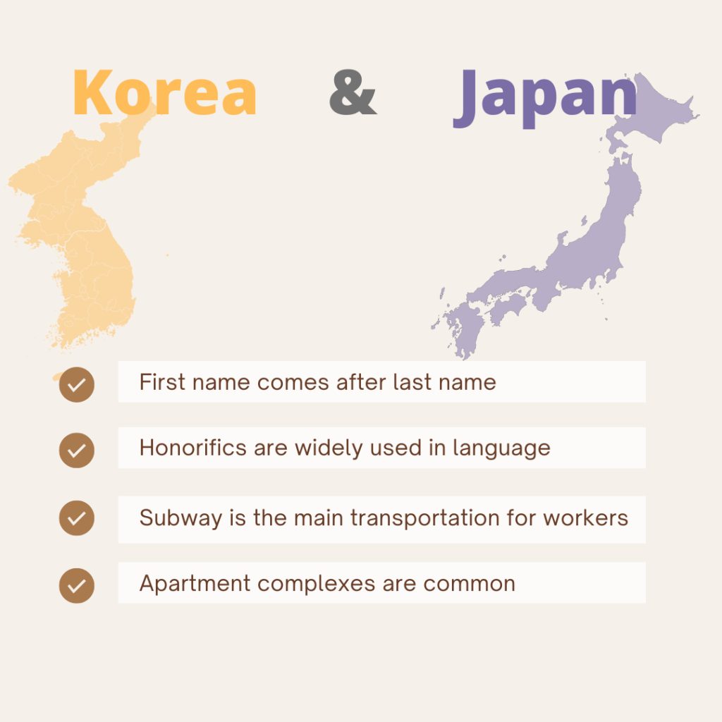 Korea and Japan are located right next to each other. It takes only 2 hours by flight. Although the two nations are geographically very close, their cultures are quite different!