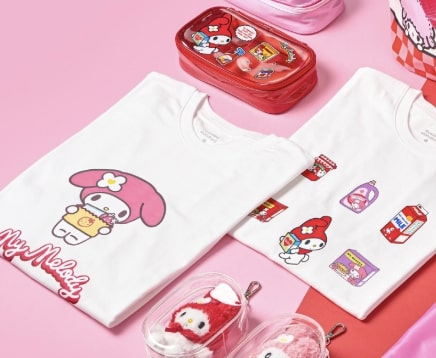 The pop-up presents My Melody’s cart filled with colorful dreams, featuring fashion items, beauty products, and limited-edition merchandise in a red and pink concept.